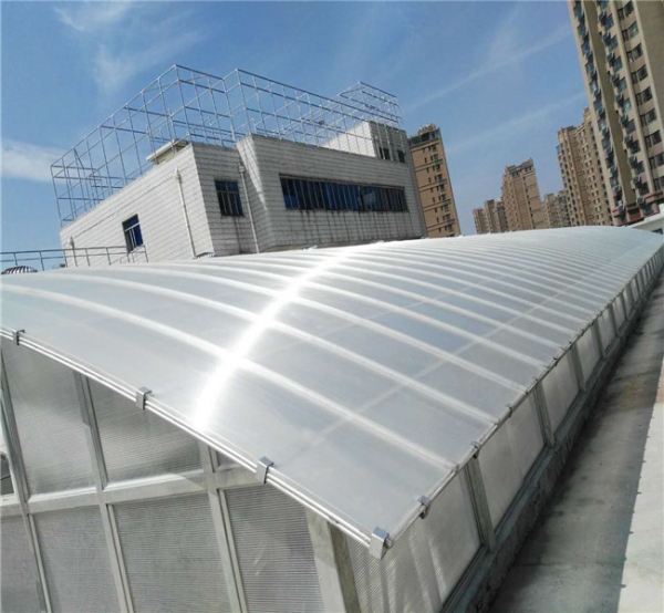 (10)耐候性: P C陽光板可以在-40℃至120℃范圍保持各項物理指標(biāo)的穩(wěn)定性。人工氣候老化試驗4000小時,黃變度為2,透光率降低值僅0.6%。