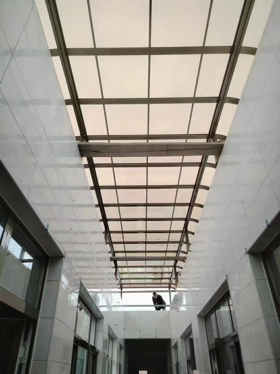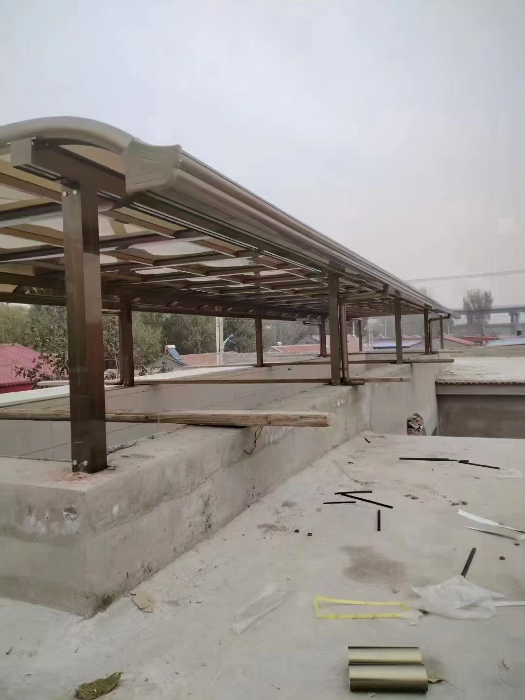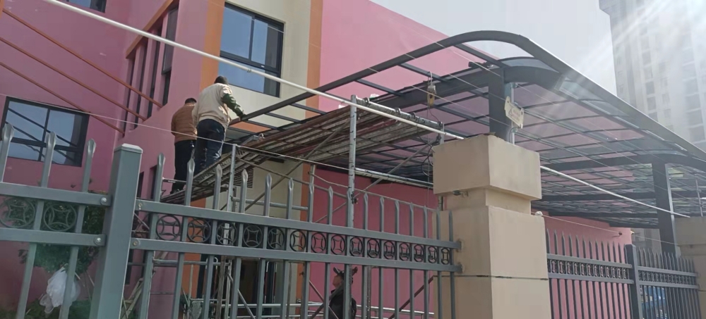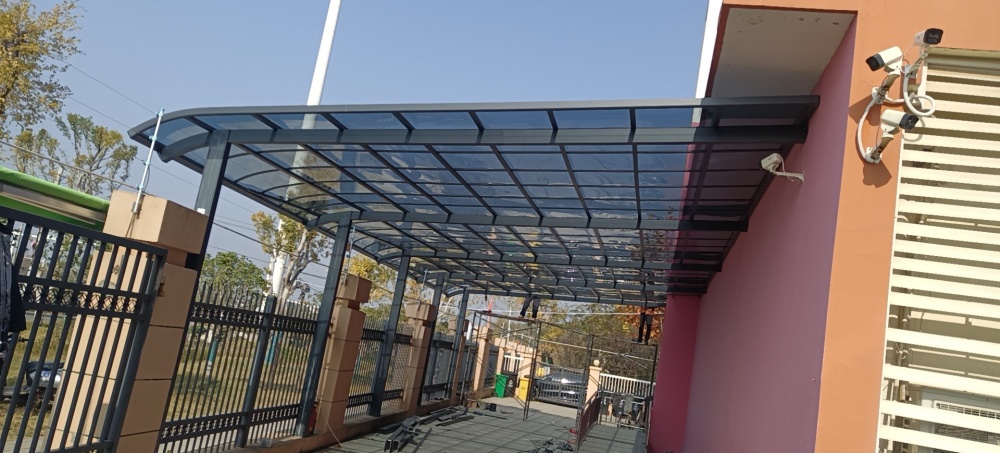 天井遮陽(yáng)擋雨案例分享——外飄式雙頭彎雨棚方案